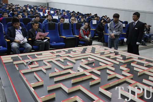 其中,特等奖获得者为我校电气学院“天工二号”代表队,队长董伉伉,指导教师袁臣虎。获得一等奖的队伍有电气学院“天工三号”,队长刘嘉伟,指导教师田旭;电气学院“天工五号”,队长陈晨,指导教师田旭;电气学院“天工六号”,队长马浩,指导教师邓集杰。获得二等奖的有电子信息学院“电信214队”,队长刘凌峰,指导教师王慧泉;电子信息学院“TJPU医信1队”,队长洪辉,指导教师田磊;电气学院“天工四号”,队长袁晓堂,指导教师袁臣虎;电气学院“天工七号”,队长陈杰鸿,指导教师邓集杰;电气学院“天工九号”,队长王岁,指导教师冯慧。另有电子信息学院“21世纪”、机械学院“CK01”等5支队伍获得三等奖。获得特等奖和一等奖的队伍将有机会代表天津市大学生参加2015年3月在美国北卡罗来纳大学举办的APEC世界电脑鼠(Micro Mouse)走迷宫大赛。