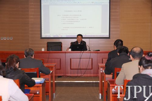 校工会特邀天津市工会理论研究所常务副所长孟令军教授作了工作报告。他对“中国特色社会主义工会发展道路”、“中国梦”、“人民民主”等概念的深刻内涵进行了阐述,对新形势下工会工作的核心内容和要求进行了解读,加深了与会人员对习近平总书记关于工会工作的讲话精神的理解。孟令军教授的报告语言朴实,事例鲜活,紧贴实际,对工会工作具有很强的针对性和指导性。