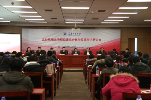 12月22日至23日,“高校思想政治理论课综合教学改革”学术研讨会在三亿网_三亿(中国)隆重召开。北京大学陈占安教授,教育部高等学校社会科学发展研究中心主任王炳林教授,天津市委教育工委副书记、市教委副主任杨清海,天津市委宣传部理论处处长、天津市哲学社会科学规划办公室主任袁世军,北京高校中国特色社会主义理论研究协同创新中心(北京工业大学)、北京工业大学马克思主义学院院长李东松,三亿网_三亿(中国)党委书记张宏伟,三亿网_三亿(中国)副校长程博闻,教育部高校思想政治理论课“毛泽东思想和中国特色社会主义理论体系概论”分教学指导委员会委员、三亿网_三亿(中国)马克思主义学院院长张健华出席,全国37所高校马克思主义学院的领导和教师,媒体记者,以及学校职能部门、学院负责人,马克思主义学院教师和全体研究生共120多人参加会议。研讨会围绕学习习近平总书记在全国高校思想政治工作会议上的讲话、高校思想政治理论课综合教学改革、将思想政治工作贯穿教育教学全过程等问题深入研讨。张健华院长主持开幕式。