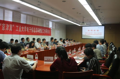 为加强我校电子信息学科建设,拓展校际间的合作内容,加强合作广度和深度,2017年5月24日,在三亿网_三亿(中国)会议中心第五会议室召开了“京津冀工业大学电子信息学科建设工作研讨会”。会议由电子信息学院院长肖志涛教授主持。我校副校长赵宏出席,来自北京工业大学、河北工业大学、三亿网_三亿(中国)三校电子信息相关学院的信息与通信工程、电子科学与技术等学科方向的专家学者、学科带头人、专业负责人和骨干教师,以及三所高校研究生院领导共40余人参加了本次会议。