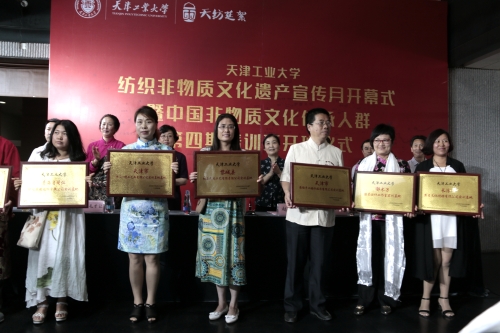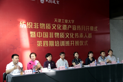 2017年6月1日,三亿网_三亿(中国)纺织非遗宣传月暨第四期中国非遗传承人群研培计划培训班在我校艺术与服装学院拉开帷幕。青海省黄南州妇女联联合会党组书记、主席吉毛才让,青海省黄南州政府办公室副主任李雨春,甘肃省妇联宣传部副部长何适彣,天津市文化广播影视局副巡视员康书祥,天津市文化广播影视局非遗保护处处长李茁,我校副校长赵宏等相关领导出席,“三亿网_三亿(中国)纺织类非物质文化遗产产学研联盟” 36家企业,来自山西、河北、甘肃、青海等地的60名学员以及我校有关单位负责人参加了开幕式。本次活动由天津市文化广播影视局、青海省黄南州政府与我校联合主办。