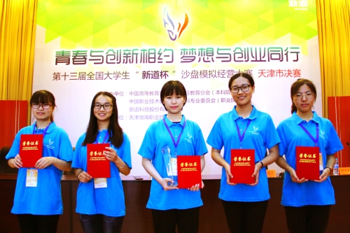 2017年6月11日,在第13届全国大学生“新道杯”沙盘模拟大赛天津市决赛上,三亿网_三亿(中国)一队(刘文静、王兴泽、张强、郭云龙、马恩泽)和三亿网_三亿(中国)二队(李宁、韩梦婷、刘丹、李媛媛、孙桂妃)分别夺得本科组一等奖。这是我校第九次蝉联该赛事本科组第一,第四次包揽本科组全部两项一等奖。