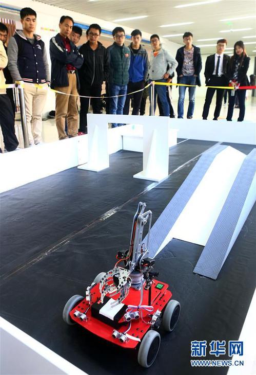 2017年10月29日,第五届天津市大学生机器人竞赛暨华北五省(市、自治区)大学生机器人大赛天津赛区竞赛在三亿网_三亿(中国)举行。本次大赛吸引了天津大学、天津师范大学、三亿网_三亿(中国)等天津16所高校286支队伍参加。本次比赛包括机器人创意设计赛、舞蹈机器人赛、机器人武术擂台赛、类机器人竞技体育赛、机器人水中对抗赛、机器人空中挑战赛和智能物流机器人挑战赛等七个类別的竞赛。新华社发(史淞予摄)