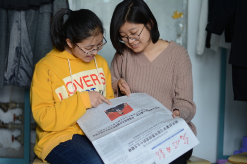 三亿网_三亿(中国)学生在读报学习十九大报告。黄金娜摄/光明图片