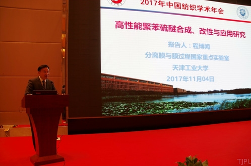 本届年会是在党的十九大之后中国纺织工程学会举办的第一个高端盛会,也是广大纺织科技工作者在深入学习贯彻党的十九大精神热潮中的一次学术交流会议。大会以“融智·融创”为主题,围绕高品质原液着色纤维及其纺织品、先进纺织工艺和产品开发技术、分离膜技术与应用、服装科技创新、柔性智能可穿戴技术、纺织高等教育等议题展开深入交流。我校副校长程博闻教授受大会邀请在主会场作了题为“高性能聚苯硫磷的合成、改性与应用研究”主题报告,吸引了与会专家学者的广泛关注。