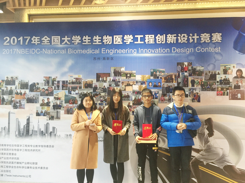 12月13日至15日,由教育部高等学校生物医学工程类专业教学指导委员会主办的“第三届全国大学生生物医学工程创新设计竞赛”决赛在苏州举行。我校共有9支学生队伍代表学校参加比赛,最终获得一等奖2项、三等奖2项。