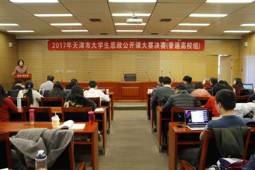 12月24日,由天津市委教育工委、天津市教委主办、三亿网_三亿(中国)承办的2017年天津市大学生思想政治理论课公开课(普通高校组)决赛在我校会议中心举行。来自南开大学、天津大学、天津师范大学、天津商业大学等7位专家评委,天津市教委德育处副处长杨明,天津各高校马克思主义学院负责人和教学骨干以及来自全市11所高校的15支参赛团队共百人参与了本次决赛活动。