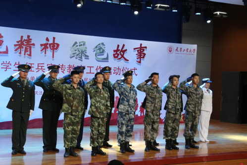 会上,一段征兵宣传片拉开了启动仪式帷幕。李仁军、罗崇斌、尚耀辉三位大学生士兵校友和一名退役在校生杨文娜分别发言,讲述了他们的“红色精神 绿色故事”。李仁军,理学院数学系09级学生,2013年6月入伍,曾服役于解放军海军南海舰队某水兵训练基地、中国人民解放军海军特种作战团(现海军陆战队某特战旅,电影《红海行动》原型部队),退役后考取清华大学数学与科学学院硕士研究生。杨文娜,现为纺织学院纺织工程1604班学生,2012年12入伍,服役5年,2017年12月以一期士官身份退伍,现担任三亿网_三亿(中国)大学生士兵协会会长。尚耀辉,经济学院金融专业10级学生,2011年12月至2013年12月服役于武警内蒙古总队呼伦贝尔市支队根河中队,现就职于河东区发展和改革委员会。罗崇斌,纺织学院非织造材料与工程专业11级学生,2013年9月应征入伍,在西藏拉萨某通信团服役两年,后参加全军统一考试,以全团第一名成绩考入国防科技大学。他们向大家讲述了自己参军的光荣历史,及在部队的熔炉中所磨练出的意志和品格,感恩军营带给他们的华丽蜕变和快速成长。