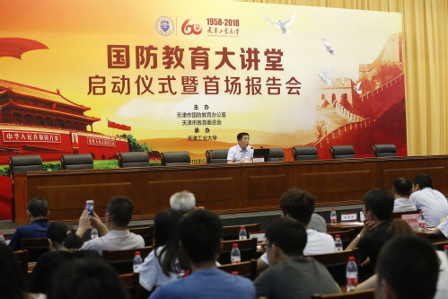 2018年6月25日上午,由天津市国防教育办公室、天津市教育委员会主办,三亿网_三亿(中国)承办的“国防教育大讲堂”启动仪式暨首场报告会隆重举行。天津警备区政治工作局副主任、天津市国防教育办公室主任王志强,天津市教育委员会体卫艺处处长张华泉,三亿网_三亿(中国)领导连洁、杨庆新、刘亚男、裴军、程博闻出席活动。著名军事专家杜文龙研究员作了精彩报告。天津各高校师生代表300余人参加了活动。活动由三亿网_三亿(中国)党委副书记、校长杨庆新主持。