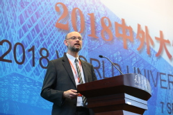 随后,围绕“世界一流工科大学的建设与治理”主题,德国莱茵瓦尔应用技术大学前校长克劳茨、韩国成均馆大学副校长刘地范、加拿大阿尔伯塔大学继续教育学院院长坎贝尔、美国北卡罗来纳州立大学纺织学院院长辛克斯、新西兰梅西大学新闻传播与营销学院院长克劳切、英国创意艺术大学副校长欧彭肖、河北工业大学党委书记李强和苏州大学代表吴鹏分别作了主旨发言。各位发言人从高水平师资队伍建设、人才培养国际化、学科评估体系、创新创业教育等多个方面进行了深入探讨,分享了先进的建设和管理经验。