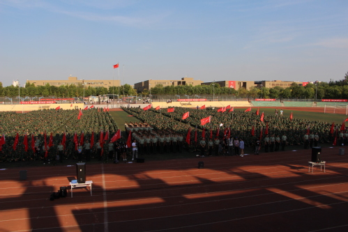 9月9日下午,我校2018级新生军训动员大会在望星体育场举行。武警天津总队执勤第三支队机动三大队教导员蒋林林少校,校党委副书记刘亚男出席。校党委办公室、党委宣传部、党委安全工作部、教务处、后勤管理处、体育工作部相关负责同志及各学院党委副书记、辅导员老师、2018级全体本科新生6000余人参加了动员大会。大会由校人民武装部部长玉波主持。