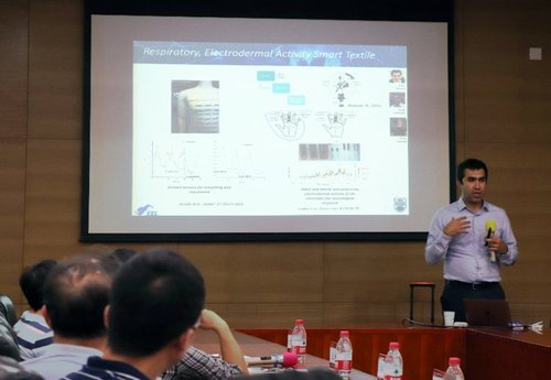 报告会上,Peyman Servati教授对智能纺织品的发展历程进行了系统概述,着重对加拿大UBC柔性电子和能源实验室(FEEL)和柔性电子、纺织中心(CFET)在柔性、智能、可穿戴设备领域所取得的最新研究成果进行了详细的介绍。Peyman Servati教授与在场师生就智能纺织品发展前景和产品开发遇到的困难和瓶颈问题进行了热烈的交流与讨论。