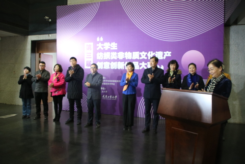 2018年11月25日,由中国纺织服装教育学会和教育部高等学校纺织服装教学指导委员会主办、我校承办的第三届全国“纺织类非物质文化遗产”创意创新作品大赛决赛在我校艺术学院举行。中国纺织服装教育学会会长倪阳生,我校副校长赵宏,中国纺织服装教育学会秘书长纪晓峰,我校教务处处长王晓红教授,南开大学设计学院谢朝教授,清华大学美术学院贾玺增博士,河北省手工艺创意产业促进会会长王昭,融今文化创始人CEO、首创非遗项目总顾问殷丽莉,我校教务处副处长王文涛、艺术学院党委副书记刘伟等领导和嘉宾出席了本次活动。