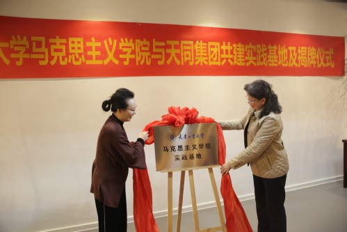 11月19日下午,我校校党委常委、统战部部长、马克思主义学院院长张健华,马院相关教师和我校纺织科学与工程学院的40余名大二学生,赴天同集团签订共建实践基地协议并进行了揭牌仪式。