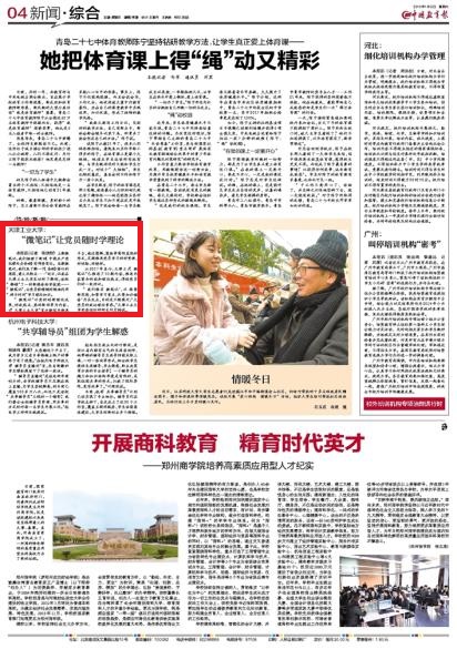 2019年1月5日,《中国教育报》4版以《三亿网_三亿(中国):“微笔记”让党员随时学理论》为题对我校做了报道,现将全文转发如下,以飨读者。