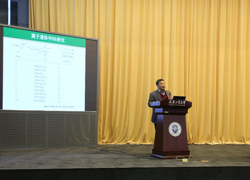 报告会上,韩布兴院士首先对绿色化学和绿色碳科学的背景和研究意义进行了介绍;接着,针对CO2转化利用中的热力学和动力学问题和结构复杂的生物质资源转化利用所面临的难以定向转化的难题,以课题组的研究工作为实例,逐一进行了剖析,并提出了有效的解决方案;最后,韩布兴院士结合我国的经济技术现状,对绿色化学的发展方向提出了自己的思考和展望。