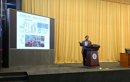 杨维慎研究员分别从分子筛膜、透氧膜和膜催化三个方向展开了报告。杨维慎研究员首先介绍了采用软物理剥层法获取单层MOF纳米片,进而组装制备超薄MOF膜的研究思路和方法,以及借助微波反应制备大面积无裂缺沸石分子筛膜的方法及应用实例;接着,以透氧膜为核心,结合具体的研究案例探讨了反应-分离-反应耦合新过程的优势和应用前景;最后,杨维慎研究员针对青年教师和研究生的科研成长之道分别从选题、研究方法和路线、创新、合作、坚持等角度生动地讲述了从事研究工作过程中应培养和具备的素质。