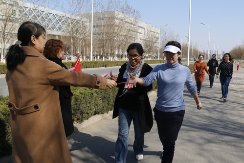 2019年3月7日中午,天气晴朗,春意盎然,校工会举办了“庆三八女教职工校园健步走”活动。学校党委副书记刘亚男和700多名女教工共同参加了活动。