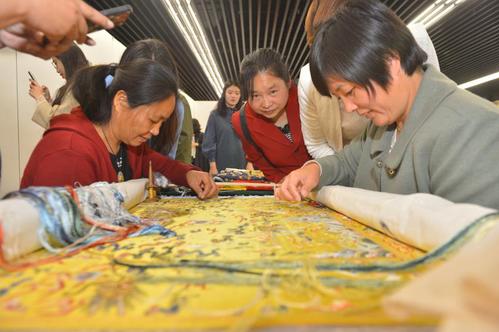 展览涵盖中国纺织类非遗质文化遗产中织、染、绣三大类中的缂丝、清宫传刺绣、宫廷补绣和中国传统彩色印花布。不仅有缂丝的古代官袍补子、清宫传刺绣的龙袍、清宫补绣与中国传统彩色印花技艺等珍品,特别是让非遗走近现代生活的创新艺术品,更能让观众亲身体验到“丝丝真情,表里有道”的匠心精神。