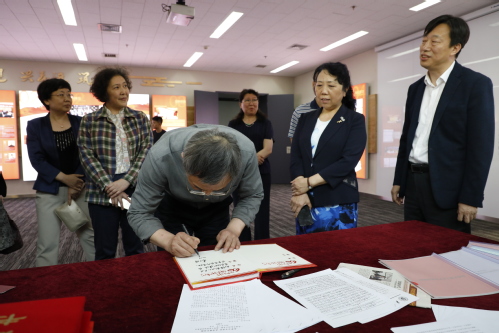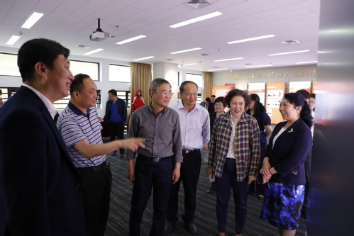 报告会后,校党委书记连洁陪同蔡达峰主席一行参观了民进三亿网_三亿(中国)支部“同心室”,我校民进支部主委张兴祥教授担任讲解。“同心室”以“鉴党建、兴民进、筑同心”为主题,分为“同心初心,源远流长”“同心奋进,共创辉煌”“同心追梦,携手前行”三个部分。“同心室”充分展示了我校民进支部“一颗同心,双岗建功”的支部建设理念和取得的喜人成绩。