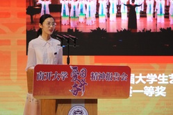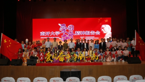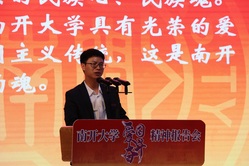 “中国不亡,有我在。”宣讲团张健教授讲述了南开先贤严修、张伯苓先生在民族危亡之际共同开启南开办学之路的故事,表达了张伯苓为国育才的爱国情怀和越难越开的奋进精神。宣传团马超老师深情讲述了以身许国的申泮文、晚年用全部精力推动中国建设数学强国的国际数学大师陈省身等诸多“南开先生”的奋斗故事和爱国情怀。宣讲团成员辛琦同学讲述了“两弹一星元勋”郭永怀校友的爱国奋斗故事。辛琦与全场师生进行“爱国三问”互动。“你是中国人吗?”大家骄傲地回答“是!”“你爱中国吗?”“爱!”“你愿意中国好吗?”全场的气氛更加热烈,800余师生响亮回答:“愿意!愿祖国繁荣富强!”