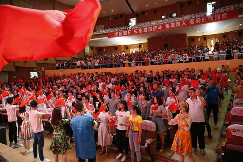 少数民族预科班的学生努尔苏力坦说:“我来自新疆哈萨克族,今天的这场活动让我的内心难以平静,我深深地体会到了爱国主义是全国各族人民的精神支柱,爱国是我们义不容辞的责任。我一定要珍惜在天工美好的学习机会,努力钻研文化知识,用奋斗书写民族团结的时代赞歌!”