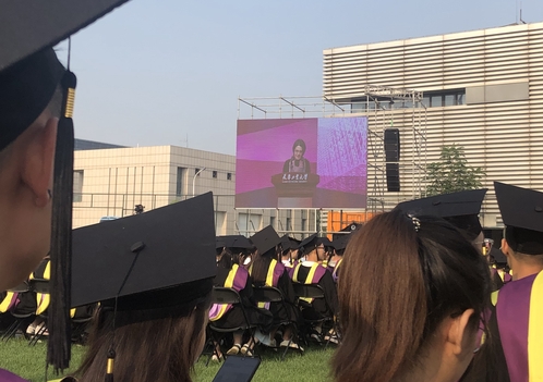 在“传承”篇,夏校长以见义勇为的经济与管理学院“五朵金花”和电子与信息工程学院李佳宁的故事为例,号召同学们传承弘扬“爱校尚德、励学笃行、求实创新”的天工精神。“寰宇任悠悠,天工是回眸”,他希望毕业生们鹏程万里,常回家看看。