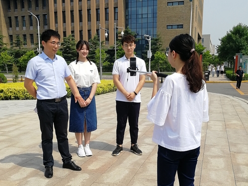本次直播通过“映客直播”平台进行,学校招生办老师、学生代表和部分单位相关负责人作为嘉宾对学校进行了介绍。直播过程中,主播和嘉宾们与来自全国各地的考生、家长、观众即时互动,就大家感兴趣的内容和关心的问题边参观、边解说。