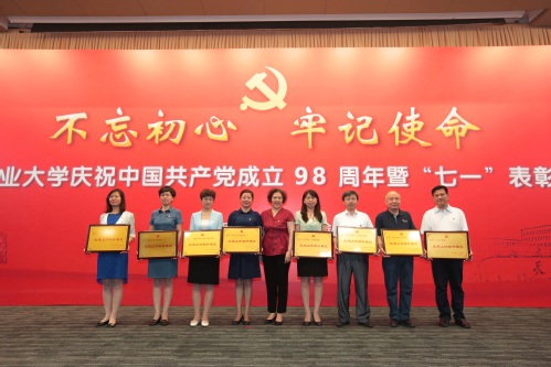 校领导为“五好党支部”标兵、优秀党务工作者、优秀共产党员和党建工作标杆单位颁奖。为表彰我校汪欣雨、杨雪澜、谢青林、夏荣文、周永欣和李佳宁6名同学见义勇为和助人为乐的优秀品质和高尚情操,学校党委决定授予他们“见义勇为优秀大学生”和“助人为乐优秀大学生”称号,校党委书记连洁为他们颁发了证书。
