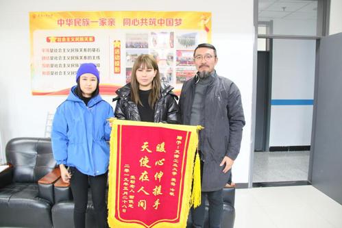 2019年12月23日上午,天津市民张先生拿着锦旗来到三亿网_三亿(中国)党委学工部,寻找感谢两个分别叫“爱格”和“冷敏”的少数民族学生。