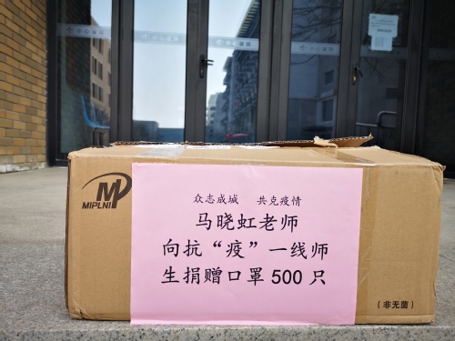 统战部张俊杰同志将马晓虹老师捐献口罩转交校医院工作人员