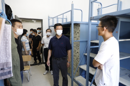 胡英江副书记一行分别实地检查了东苑宿舍楼、西苑宿舍楼、北苑宿舍楼的迎新准备和疫情防控工作落实情况,详细了解了新生提前报到和学生公寓区封闭管理的有关情况,与来校报到的新生和家长亲切交流。他代表学校感谢家长对因疫情防控要求不能进入学生公寓区的理解与支持,热情邀请家长们在疫情结束后来校走走看看。他强调,迎新工作既是展示学校形象的一张名片,又是战“疫”大考进入常态化后的练兵,各部门及相关单位要深刻认识做好迎新准备和常态化疫情防控工作的重要性和紧迫性,坚决贯彻国家及天津市、学校各项工作部署和要求,加强工作力量统筹,压实各方工作责任,守护好全校师生身体健康,以饱满的精神状态迎新新生的到来。各学院要在全力做好学生日常思想政治教育与管理工作的同时,主动关注学生思想动态和心理状态,及时做好人文关怀和心理疏导。