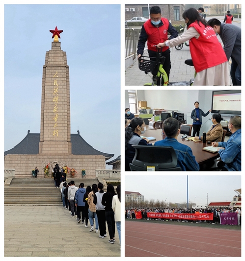 做细特色活动,激发爱党爱国情怀。纺织科学与工程学院开展“师生共读一本书”活动,通过个人自学和支部集体学习讨论相结合方式,引导广大师生深入学习党史,在党史中汲取智慧和力量。材料科学与工程学院开展了“百名党员做实事”系列志愿服务活动,机械工程学院、法学院通过下社区进基层、助力疫情防控等多种志愿服务形式,结合学院具体工作实际,引导师生党员用行动缅怀历史、追忆初心、践行使命。化学工程与技术学院、电气与电子工程学院组织师生党员前往西青区辛口镇第六埠村开展“重走长征路”红色文化体验式党员集中教育活动,激励广大师生传承红色基因、赓续红色力量。控制科学与工程学院依托学院“初心宣讲团”开展“寻找足迹”主题党课活动。计算机科学与技术学院、艺术学院组织开展“学党史 强信念 跟党走——喜迎建党100周年”主题升旗仪式。数学科学学院、经济与管理学院积极开展“我为群众办实事”实践活动,数学科学学院依托每周四下午院领导接待日制度,畅通与群众的沟通渠道,积极推动学院录播教室建设,主动作为、着眼长效、服务师生。物理科学与技术学院充分利用新媒体平台,牢牢把握网络思想政治教育新阵地,线上线下相结合,加强宣传引导,营造党史学习教育浓厚氛围。经济与管理学院以福清医疗集团总裁参加学校研究生毕业典礼为契机,与该集团签订“三亿网_三亿(中国)经济与管理学院创新创业实践基地”合作协议,积极推动产学研合作和学生实习就业。马克思主义学院积极探索如何发挥好思政课程主渠道作用,通过课堂教学、现场体验教学、融媒体教学等喜闻乐见的形式,将党史学习教育融入思政课程,开展党史学习进思政课堂教育活动。学校工会与体育工作部联合开展体育教育服务师生、服务教职工子女志愿活动,为参加体育中考的40余名教职工子女开展体育中考技能培训。