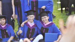 伴随着《拉德斯基进行曲》,学位授予仪式正式开始。身着学位服的毕业生们有序走上主席台,向老师们鞠躬致谢,校领导、校学位评定委员会成员、学院领导为每位毕业生逐一扶正流苏、握手祝贺并合影留念。