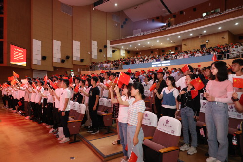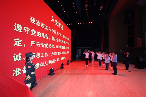 活动最后,校党委书记俞绍平同志领誓,全体党员起立重温入党誓词。誓词铿锵,丹心闪耀,表达了对坚定政治信仰和时刻不忘初心、矢志永远奋斗的决心。
