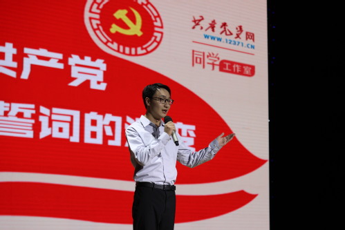 人文学院学生党员李龙锐通过讲述中国共产党入党誓词的历史沿革,深刻揭示了红色基因是共产党人的生命密码,红色基因里记录了共产党人筚路蓝缕的来时之路,蕴含着马克思主义政党的性质宗旨,彰显了信仰的伟大力量。