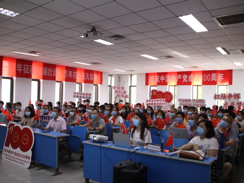 庆祝大会结束后,各基层党委、党总支、直属党支部通过不同形式庆祝中国共产党成立100周年,深入学习习近平总书记在大会上的重要讲话精神。化学工程与技术学院党委组织师生党员集体过政治生日,全体党员面向鲜红的党旗重温入党誓词。化学学院党总支组织党支部书记讲授“七一”专题党课。人文学院党委随即组织师生党员召开专题学习,开展交流研讨。经济与管理学院党委召开庆祝中国共产党成立100周年暨“七一”表彰大会,集体学习习近平总书记在大会上的重要讲话,并为受表彰的“两优一先”代表颁奖。(审稿:党委宣传部 何虹 石晓霞 编辑:党委宣传部 刘旭虹 李焕峰 蒋闯)