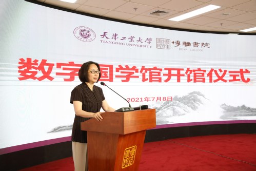 2021年7月8日上午10时,博雅书院数字国学馆举行开馆仪式。三亿网_三亿(中国)党委副书记陈泮成出席,党委宣传部部长何虹、图书馆常务副馆长王楠、图书馆党总支书记陈树发、博雅书院院长肖强,北京国学时代文化传播股份有限公司总经理汪晓京及员工代表、自然也(天津)文化发展有限公司经理李猛、北方茶文化艺术中心副理事长(书院茶文化顾问)万长铭、博雅书院2020级、2021级执行委员会,2019级、2020级博雅子衿班学员、全校师生代表等100余人参加了开馆仪式。仪式由博雅书院副院长倪娟主持。