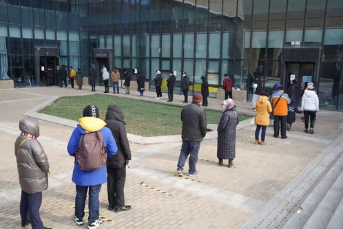 上午7时许,受检人员陆续前往艺缘活动中心下沉广场进行核酸检测采样。采样过程中,大家按照间隔一米、全程佩戴口罩的要求排队等候,有序进入场地,依次扫码完成信息登记,由医务人员开展核酸检测操作,逐一接受采样。