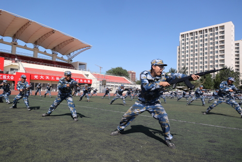 光大天工品格,赓续红色血脉。伴随着激动人心的倒计时,军训成果汇报展示正式开始。千人方阵不断变换着字样,同学们高呼“我爱天工”和“严谨、严格、求实、求是”的校训……方队表演强劲震撼,口号铿锵有力,表达了全体2023级新同学对祖国和学校的深情祝福和立志成才的坚强决心。