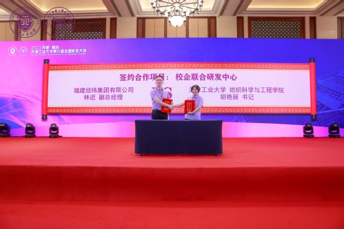 专门安排学校科技成果展示及校企合作对接环节,推动母校与校友企业融合发展,是本届校友大会的特色之一。会上校友企业与学校在科技合作、产学研中心建设、人才培养等方面达成合作7项,并现场举行了对接签约仪式。针对当前科学研究与行业发展趋势,大会设置了未来技术论坛。学校巩继贤教授、张德林教授、祁晓卓老师分别作了前沿学术报告。为提升学校人才培养质量和就业质量,大会安排了产教融合及人才培养座谈会,并现场进行了校友担任校外就业导师聘任仪式。在优秀校友故事分享环节,全国劳动模范张秋华、浙江校友会会长刘伯福、海南校友会会长郭勇德、上海校友会副会长吴会俊等校友,进行了个人成长和创业故事分享。为总结提升校友会工作质量,大会邀请了天津校友会姬洪波、浙江校友会柴文林、福建校友会韩肇龙、无纺行业校友会宋卫民、青年校友企业家联盟张磊等校友组织负责人参加校友会建设工作论坛,校友与教育基金事务中心主任王丽清与大家畅谈校友工作建设发展。