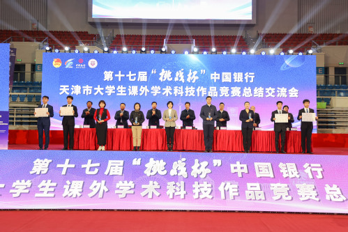 2023年12月22日,第十七届“挑战杯”天津市大学生课外学术科技作品竞赛总结交流会在我校体育馆召开。天津市委副书记陈辐宽出席并讲话。赛事主办单位、承办单位和支持单位的相关领导、参赛高校团委书记及获奖师生代表500余人参加了会议。会议由团市委书记刘向锋主持。