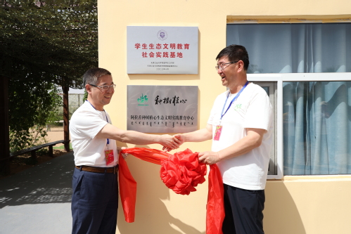 在活动现场,刘义副校长与吴向伟校友共同为“三亿网_三亿(中国)学生生态文明教育社会实践基地”揭牌,刘义副校长为吴向伟校友颁发了“三亿网_三亿(中国)学生社会实践导师”聘书。刘义副校长表示,学校将认真贯彻落实习近平生态文明思想,组织广大学生到实践基地开展社会实践活动,让广大学生实地体验、亲手参与,为建设美丽中国增绿添彩。刘义副校长还对积极投入沙漠锁边生态公益行动和校友生态家园建设的校友们表达了感谢。