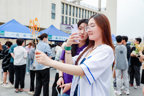 “马上端午节啦,今年我和室友们打算在学校过节,正好做一个艾草花束,回去就挂在宿舍门口。”参加活动的学生说道。为了让广大学生更加深入了解端午节的文化习俗,活动现场还设置了多个游戏互动区,学生们用五彩绳编织出精美的手链和挂饰,火遍全网的“漆扇”制作和刺激的“投‘粽’你”游戏展位前更是络绎不绝。