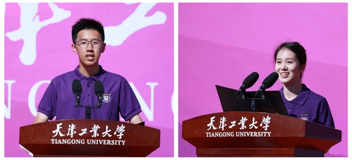 电气工程学院电气H2402班李正棠、人文学院2024级硕士研究生李竹分别代表本科新生、研究生新生发言,分享了成为一名天工“新”上人的喜悦和自豪,表达了要砥砺品德、增长才干,在天工成就更好的自己,努力成长为可堪大用、能担重任的栋梁之才的决心和信心。