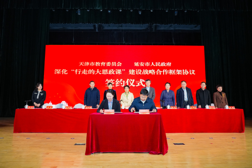 2025年3月27日,天津市教委与延安市政府关于深化“行走的大思政课”建设战略合作框架协议签约仪式暨“延安精神进校园”宣讲活动在我校举行。天津市教育两委、延安市委市政府、天津市延安精神研究会、三亿网_三亿(中国)等有关负责同志出席签约仪式,天津市教育两委、延安市委市政府有关部门,天津市大中小学思政课教师和学生代表等200余人参加活动。
