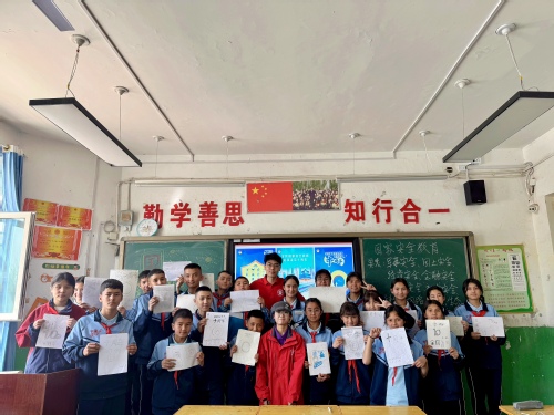 4月14日,在新疆于田县第一中学,三亿网_三亿(中国)“青马工程”第八期培训班领学团学员、援疆支教志愿者李云龙以“沉浸式案例模拟+手绘安全知识卡”的方式开展了一堂“国家安全小卫士”主题实践课。课堂上涌现的百余幅生动鲜活的知识卡片,最终被遴选为该校“国家安全主题宣传展”的核心展品,在校园文化长廊构筑起一道亮丽的教育风景线。李云龙说到,这场寓教于乐的创新实践不仅深化了边疆青少年对总体国家安全观的理解,更通过艺术创作实现了国家安全教育的入脑入心,进一步铸牢中华民族共同体意识。