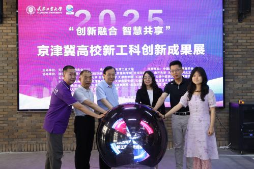 在大家的见证下,姜勇与嘉宾及我校师生代表共同触摸启动球,林立刚宣布“创新融合 智慧共享”2025年京津冀高校新工科创新成果展正式启动。