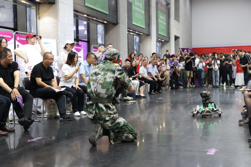 在动态闪秀环节,当《战神巡礼·机甲荣光》的激昂音乐奏响,智能机器人车与化身“丛林搜寻野战队员”的扮演者协同演绎出力量与精密的完美结合,引发现场阵阵惊呼。《龙的传人》服饰秀,将古老文明与现代科技编织成一场视觉盛宴。《药纤未来》中西药成果情景剧、《传承非遗 赓续文脉》工科与艺术融合服饰展示、《恒韵漆境》陶胎漆艺展示、《未来衣术》医用材料时尚动态展示均获得现场观众的热烈掌声。