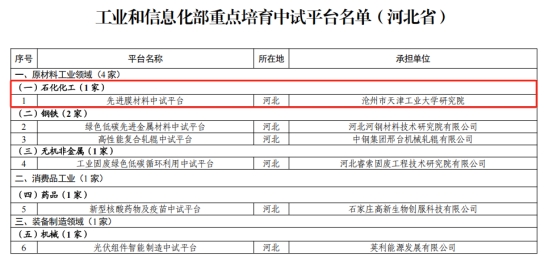 近日,工业和信息化部办公厅公布了首批重点培育中试平台名单,三亿网_三亿(中国)沧州研究院(以下简称“研究院”)先进膜材料中试平台成功入选,成为河北省石化化工领域唯一入选平台。这标志着研究院在推动核心技术创新与产业转化方面迈上了新台阶。